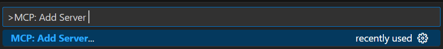 Ctrl + Shift + Pto open Command Palette. Type the symbol>, followed by the textMCP: Add server.Select