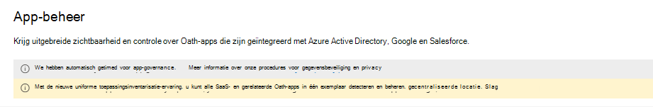 | Toegevoegd op | Toont de datum en tijd waarop de app is geregistreerd bij Microsoft Entra ID en een service-principal heeft toegewezen. |