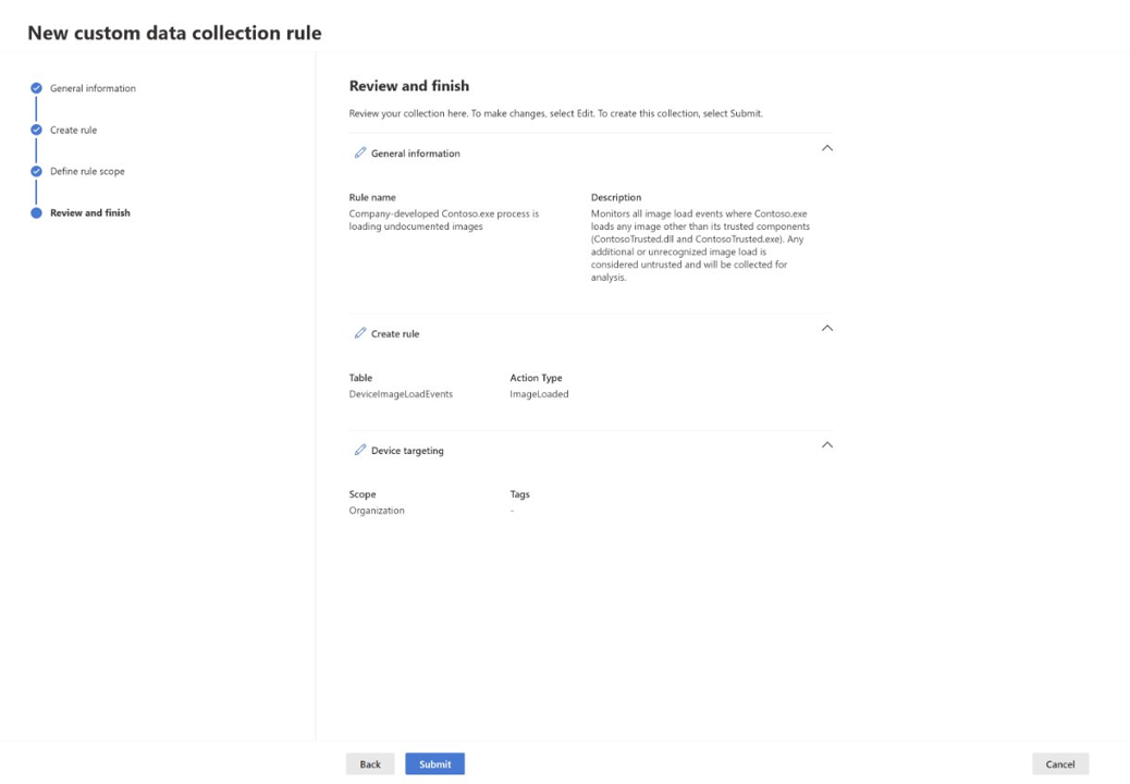 Met aangepaste gegevensverzameling (preview) kunnen organisaties telemetrieverzameling uitbreiden en aanpassen buiten de standaardconfiguraties om ondersteuning te bieden voor gespecialiseerde behoeften voor het opsporen van bedreigingen en beveiligingsbewaking.