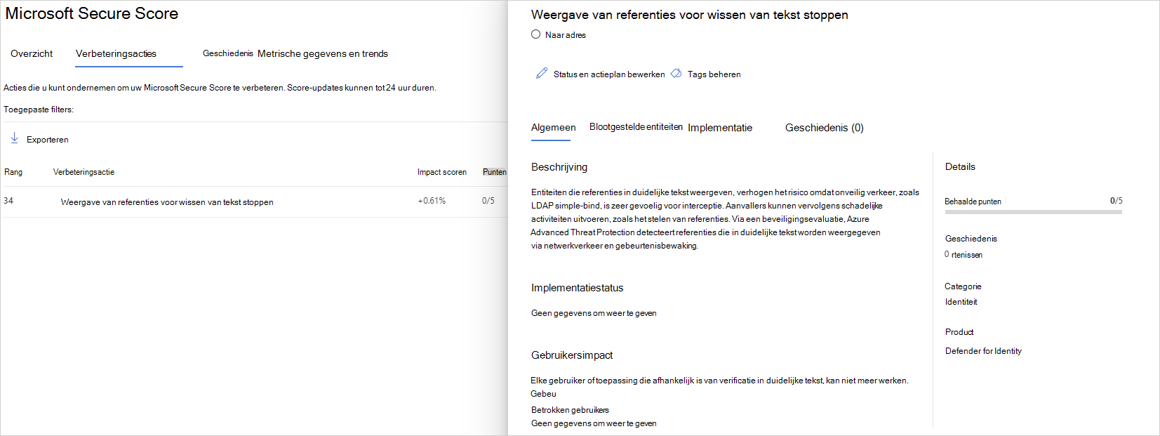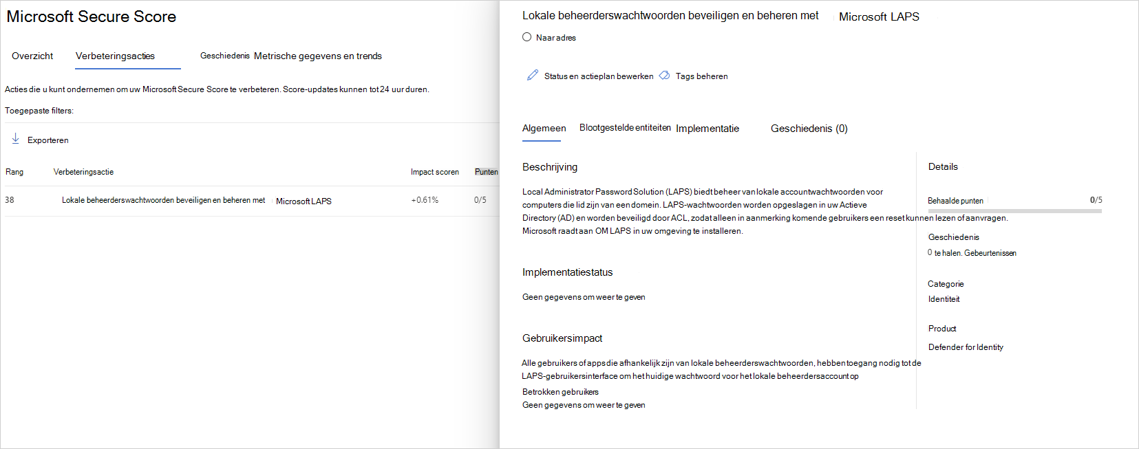 Bekijk de aanbevolen actie op https://security.microsoft.com/securescore?viewid=actions om te ontdekken welke van uw gevoelige accounts riskante LMP's hebben.
