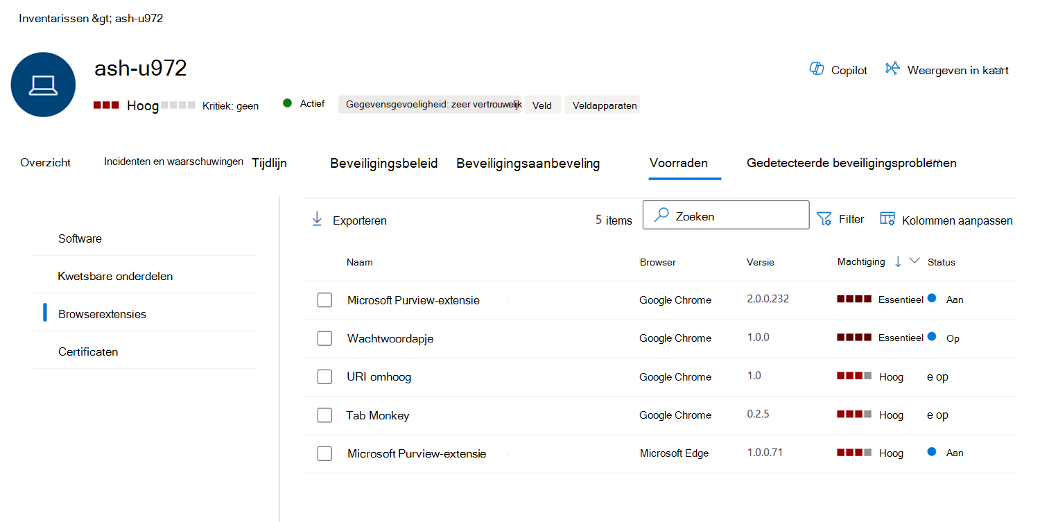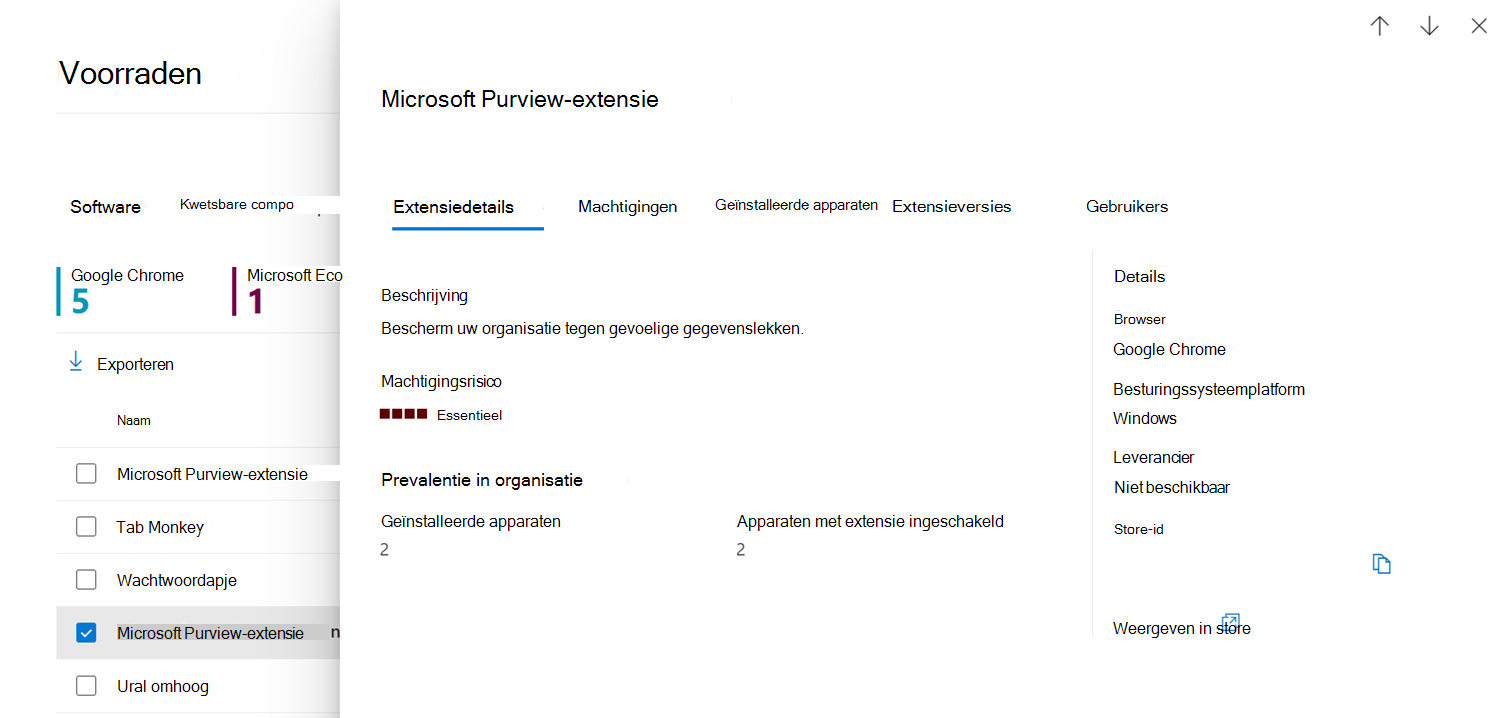 De beschikbare informatie helpt uw beveiligingsteam meer te weten te komen over de geïnstalleerde extensies en deze informatie te gebruiken om beslissingen te nemen over hoe u extensies wilt beheren.