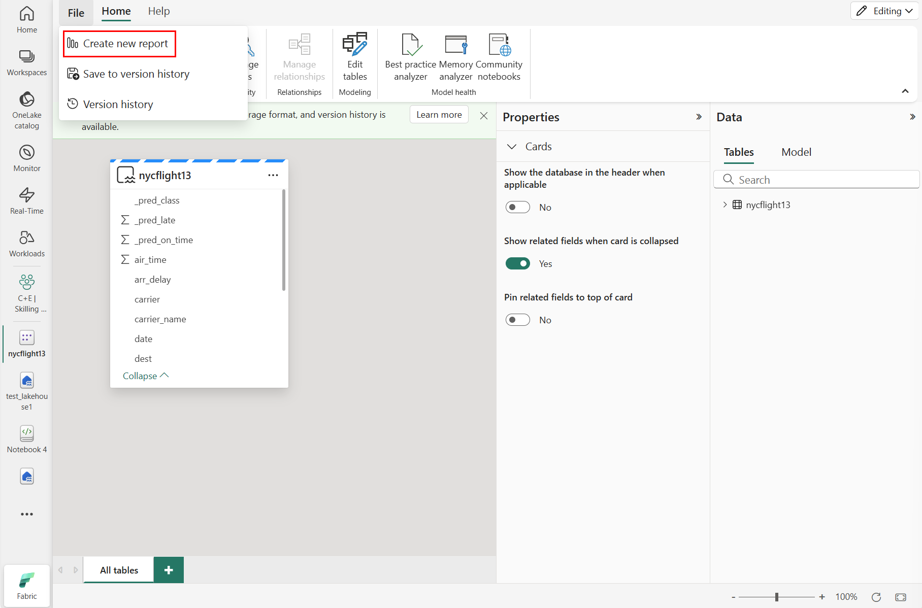 Gebruik de deltatabel om een semantisch model te maken.