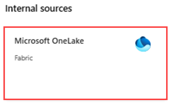 Selecteer Microsoft OneLake onder Interne bronnen.