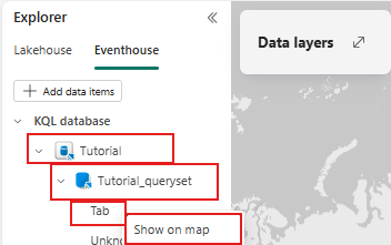 Selecteer in het Explorer-venster Eventhouse en selecteer + Data-items toevoegen en kies de Tutorial eventhouse.