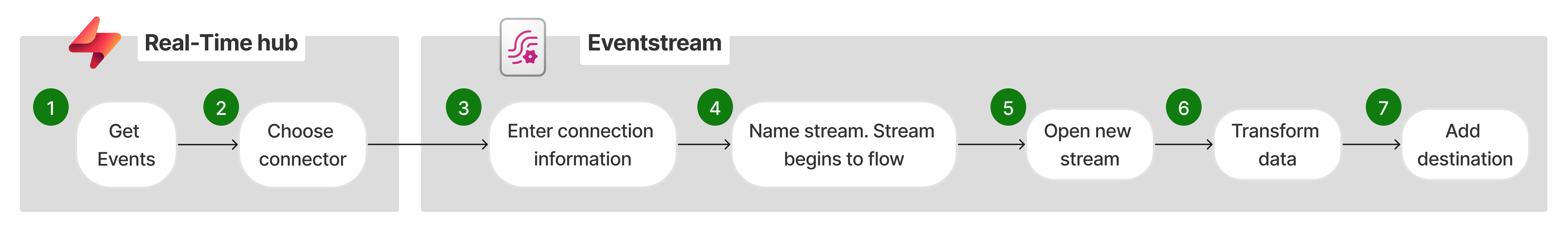 Deze gebruikersstroom laat zien hoe een data engineer gebeurtenissen van een groot aantal streamingbronnen kan laden en transformeren in de realtime hub.