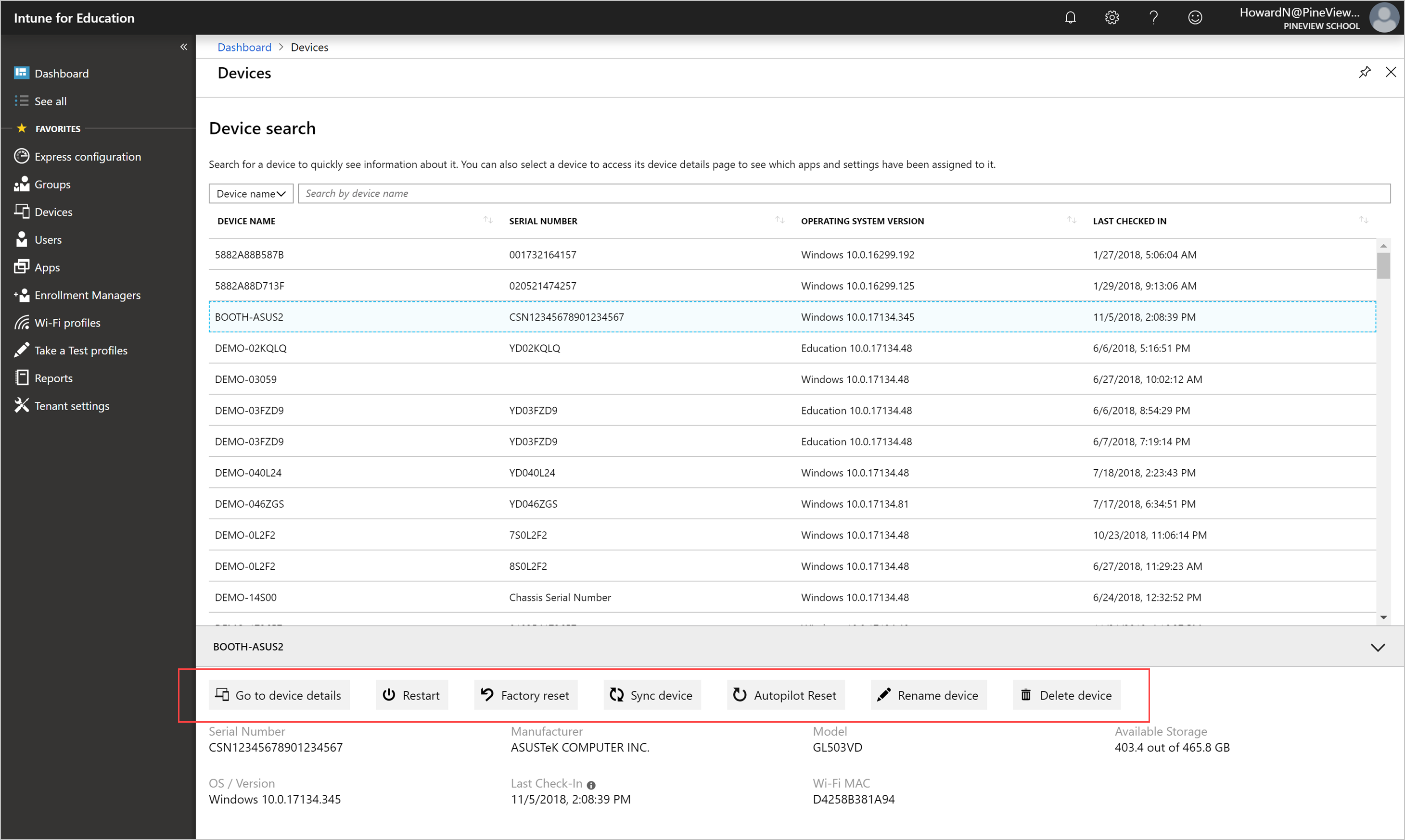 Als u zich op een andere locatie bevindt dan een apparaat of de gebruiker en u deze wilt helpen problemen op te lossen, gebruikt u de externe acties in Intune for Education.