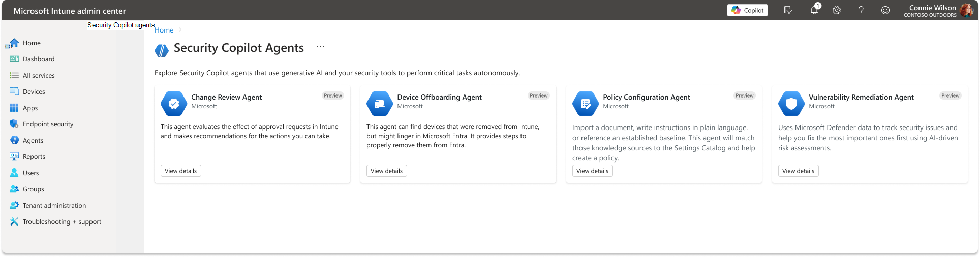 Security Copilot agents in Intune overzicht