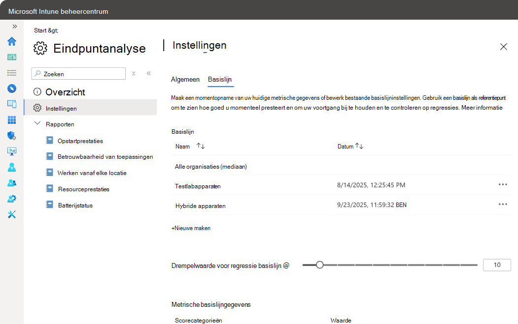 U kunt maximaal 20 basislijnen per tenant maken. Verwijder oude basislijnen wanneer ze niet meer nodig zijn.