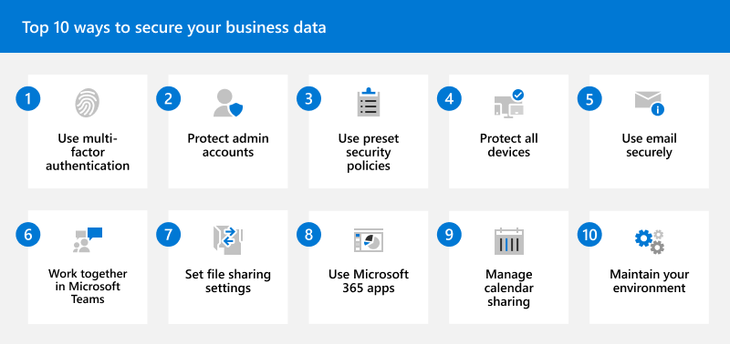 In dit artikel worden de 10 belangrijkste manieren beschreven om uw bedrijfsgegevens te beveiligen met Microsoft 365 voor Bedrijven. Zie Microsoft 365 User Subscription Suites voor kleine en middelgrote bedrijven voor meer informatie over wat elk abonnement omvat.