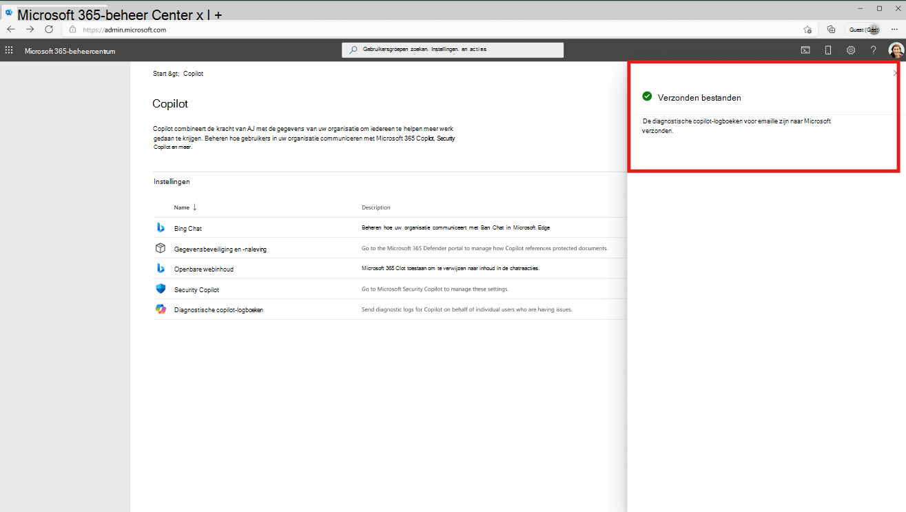 Microsoft 365 Copilot staat momenteel door de gebruiker geïnitieerde feedback toe. Als beheerder kun je feedback geven om het door de gebruiker geïnitieerde proces aan te vullen. Dit helpt Microsoft uitgebreide diagnostische gegevens te ontvangen om te helpen bij foutopsporing, met name in gevallen waarin gebruikers mogelijk zelf geen feedback kunnen geven. Door feedback te geven namens je gebruikers, kun je helpen de algehele ervaring van Copilot voor je organisatie te verbeteren door de kwaliteit en relevantie van de antwoorden te verbeteren.