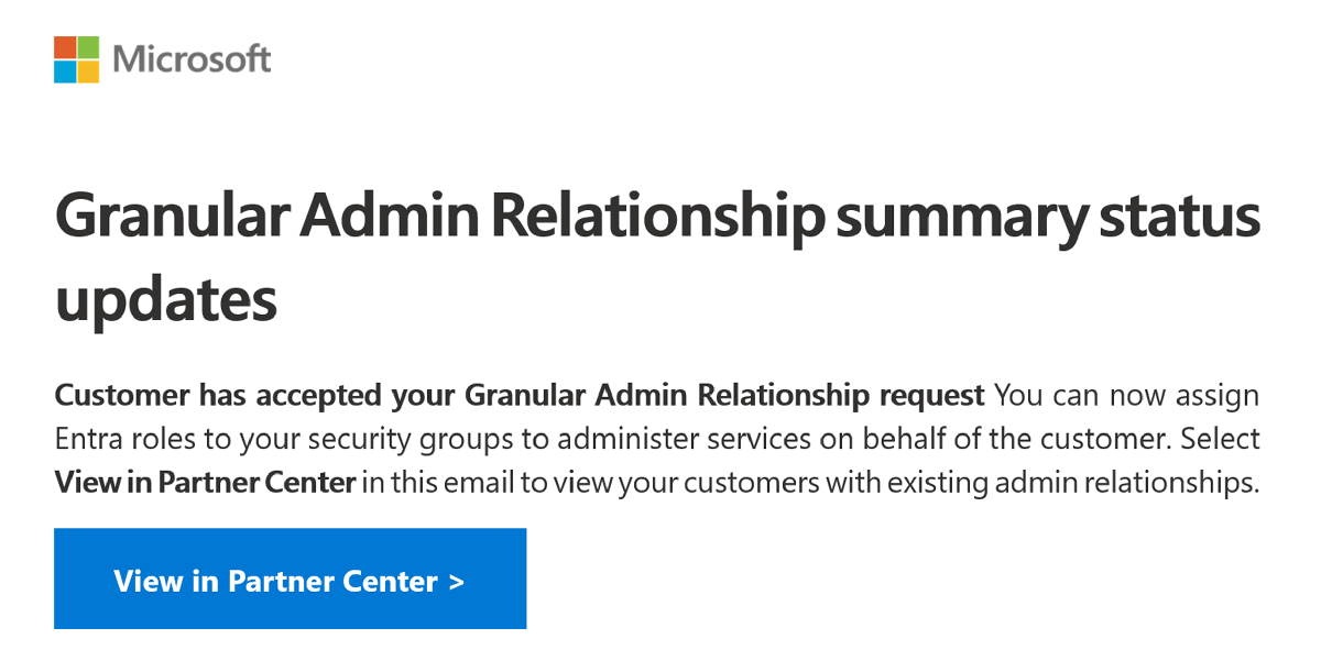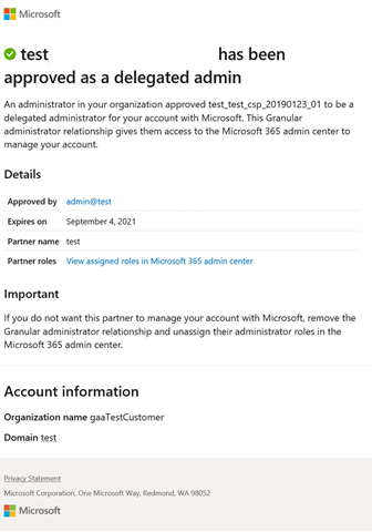 Klanten kunnen uw aanvraag goedkeuren voor gedetailleerde gedelegeerde beheerdersbevoegdheden (GDAP) in het Microsoft 365-beheercentrum.