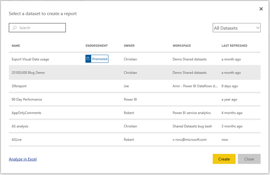 Een van de semantische modellen is gelabeld gepromoveerd. Meer informatie over dat label in de sectie Een goedgekeurd semantisch model zoeken, verderop in dit artikel.