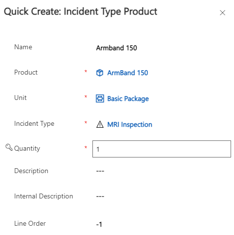 You can add products to the incident type by creating an incident type product record. To add an incident type product, select the Product tab and then select + New Incident Type Product.