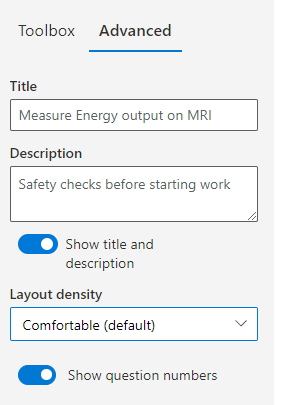 Next, you can drag the question types from the toolbox in the right pane and then drop them into the inspection canvas. The following question types are available: