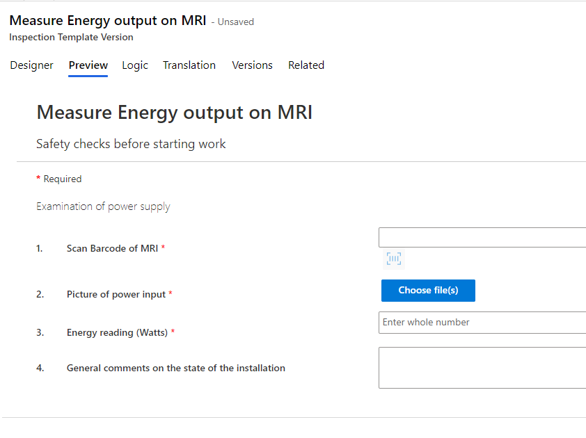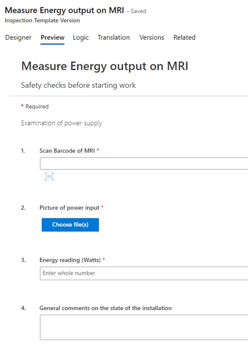 Select + New to open the New Inspection Template Version window, as shown in the following screenshot.