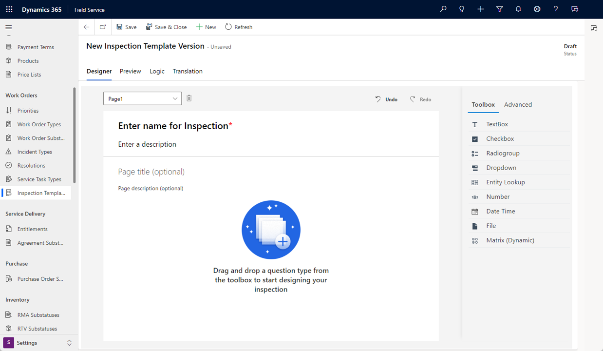 For more information, see Add inspections to work orders in Dynamics 365 Field Service.