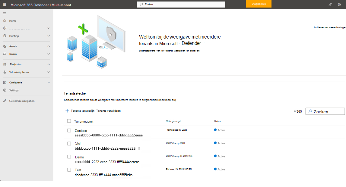 De Microsoft Defender multitenantweergave heeft momenteel een limiet van 100 doeltenants.