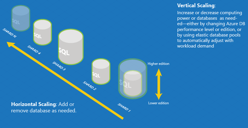 Tradycyjnie scenariusze takie jak te zostały rozwiązane przez inwestowanie w serwery o większej skali w celu obsługi aplikacji. Ta opcja jest jednak ograniczona w chmurze, w której wszystkie operacje przetwarzania odbywają się na wstępnie zdefiniowanym sprzęcie towarów. Zamiast tego dystrybucja danych i przetwarzania w wielu identycznych strukturalnych bazach danych (wzorzec skalowania w poziomie nazywany "fragmentowaniem") stanowi alternatywę dla tradycyjnych metod skalowania w górę zarówno pod względem kosztów, jak i elastyczności.