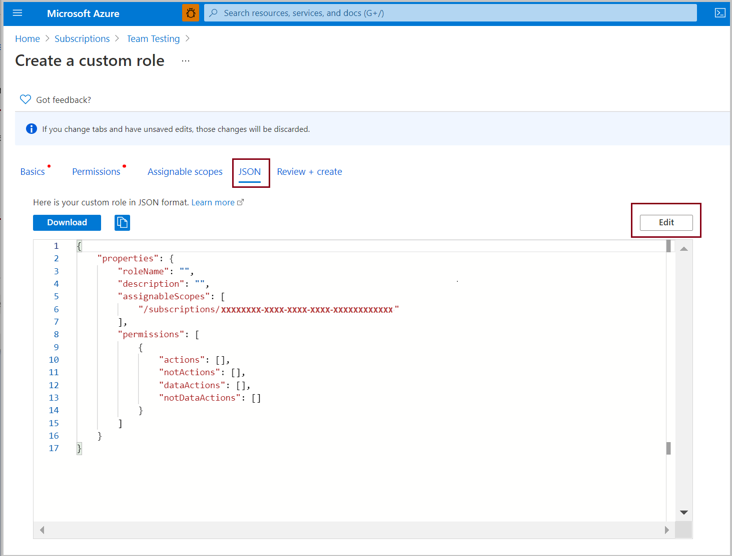 W portalu Azure otwórz subskrypcję, w której chcesz przypisać rolę niestandardową.