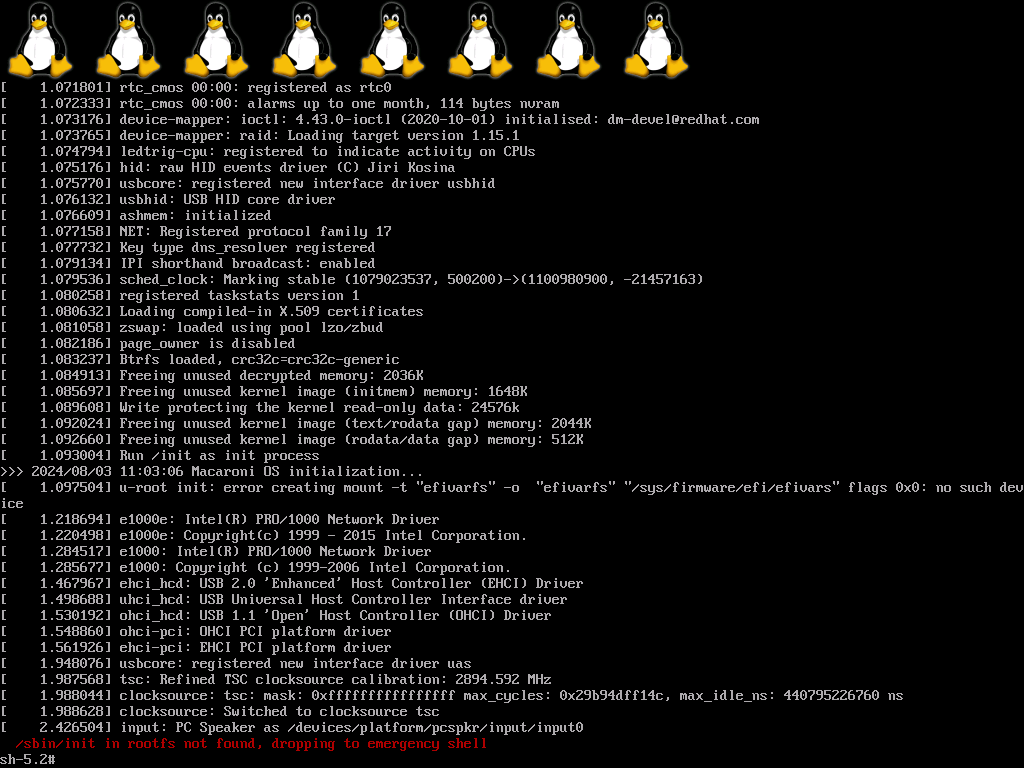 Ponieważ problem wydaje się być błędem podczas montowania systemu plików efivarfs, zaleca się zapytanie na forum Maccaroni/Linux.