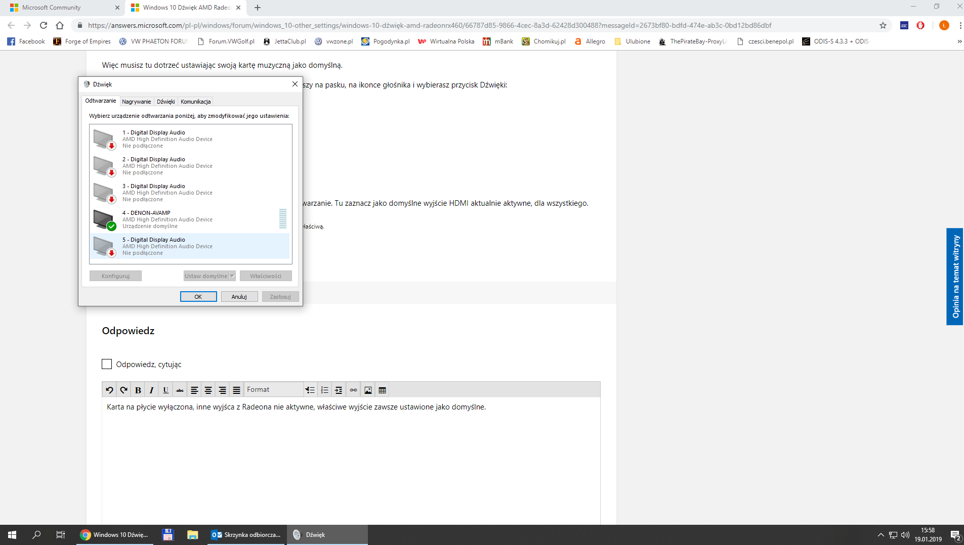 Kożystam z karty wbudowanej w Radeona RX460 dźwięk idzie po kablu HDMI do amplitunera.
