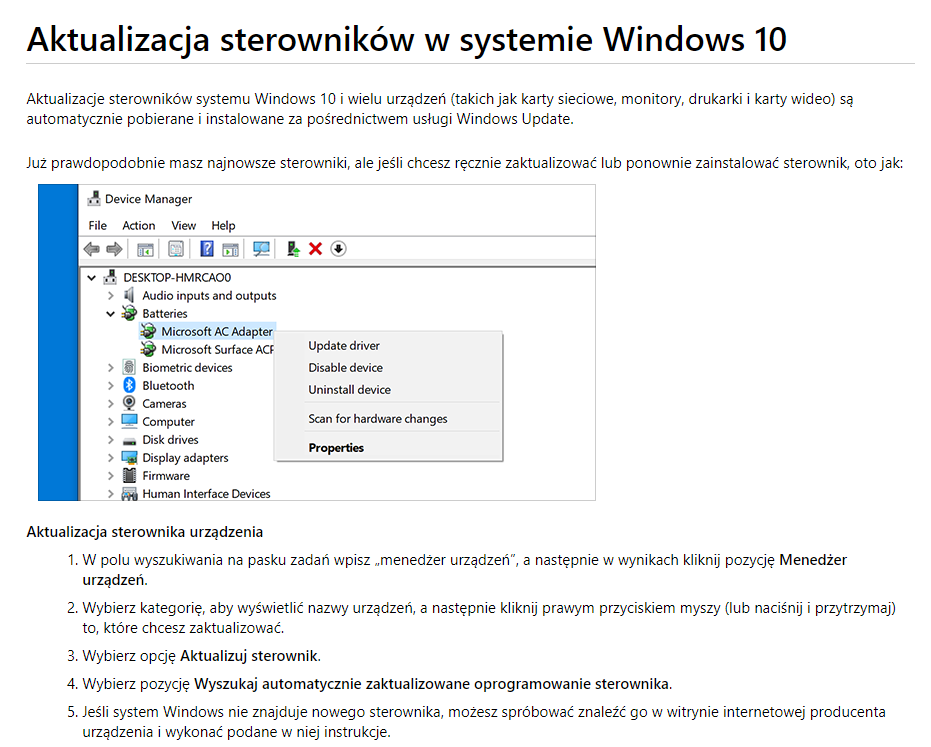 - Proszę o aktualizację sterowników, jeżeli to nie było jeszcze zrobione.