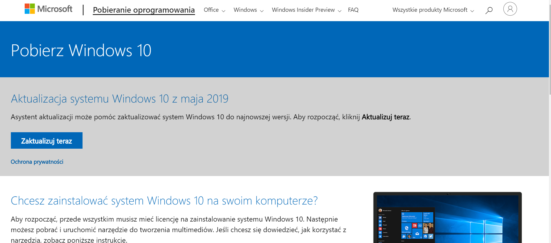 Nośnik instalacyjny możesz utworzyć korzystając z tego linku: https://www.microsoft.com/pl-pl/software-download/windows10.