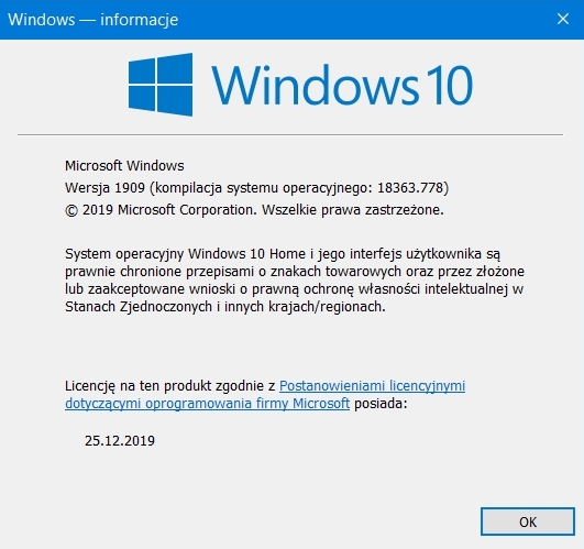 Dodatkowo proszę o inofrmacje jaką aktualnie masz zainstalowaną wersję systemu Windows 10. Aby sprawdzić zainstalowaną wersje wpisz komendę winverw pole wyszukiwania koło przycisku Start i naciśnij Enter. Wyślij proszę zrzut ekranu z tą informacją.