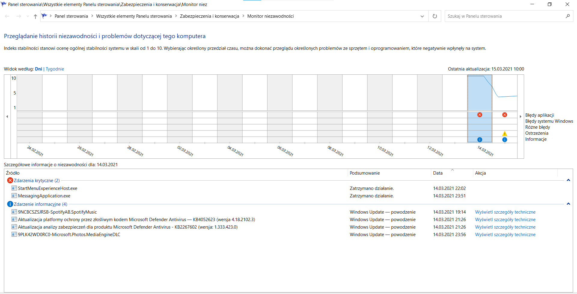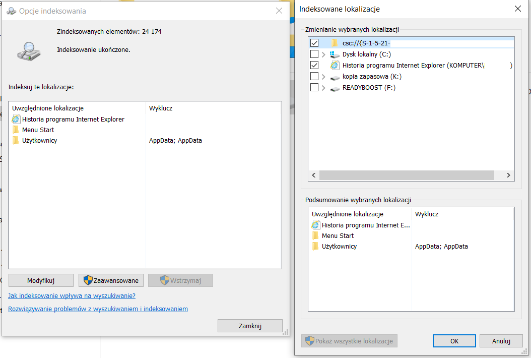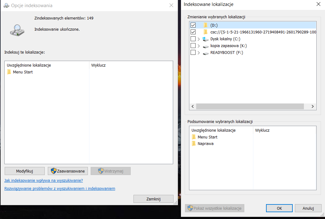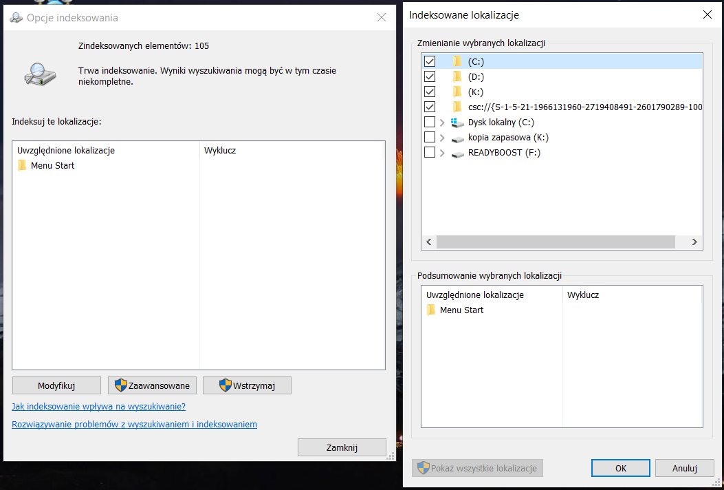System Windows 10 64-bit restartowałem 14 lipca 2021 roku z chmury. Zostawiłem pliki osobiste. Wersja 20H2. System jest zainstalowany na dysku C, a dysk D jest "Magazynem plików". Dysk D jest oznaczony ze zgodą na indeksowanie. Reperowałem dysk D i dysk C poleceniami CHKDSK i nie przyniosło to rezultatu pozytywnego. Nie popsuło też nic.