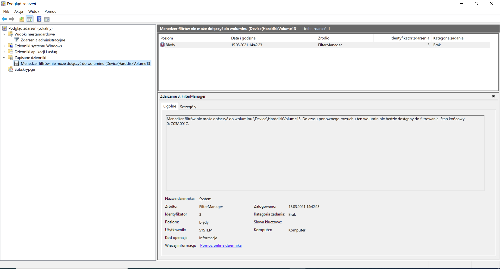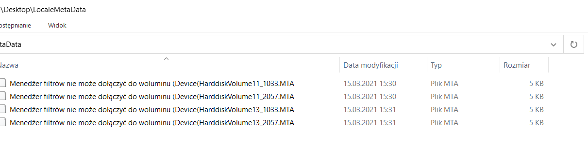 PS. Po resecie menedżer Filtrów nie mógł się podłączyć do woluminu 11 i 13. System jednak to naprawił. Wkleję poniżej trochę "Obrazków".
