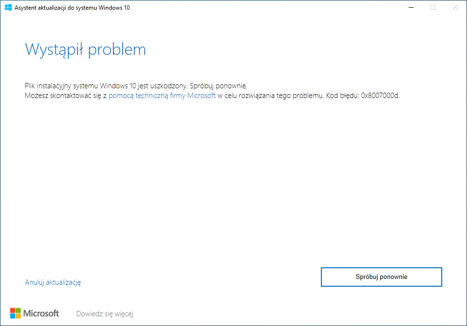Po zakończeniu można odwiedzić ten link i wykonać kroki rozwiązywania problemów z wyprzedzeniem.