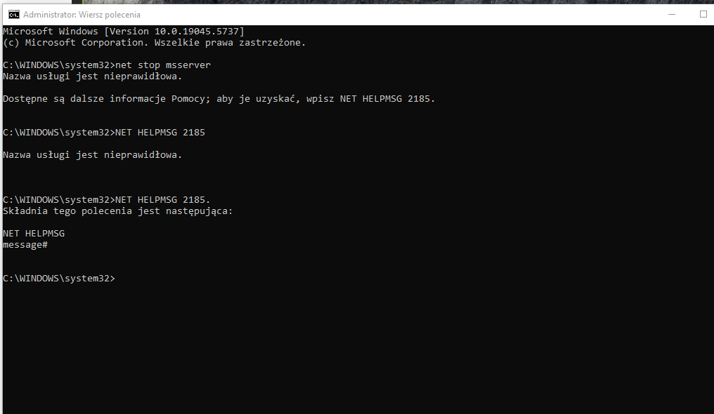 net stop msserver