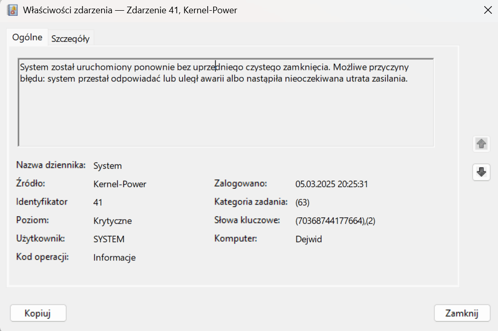 kernel- power 41 przez który zamraża mi komputer przez co muszę go restartować.
