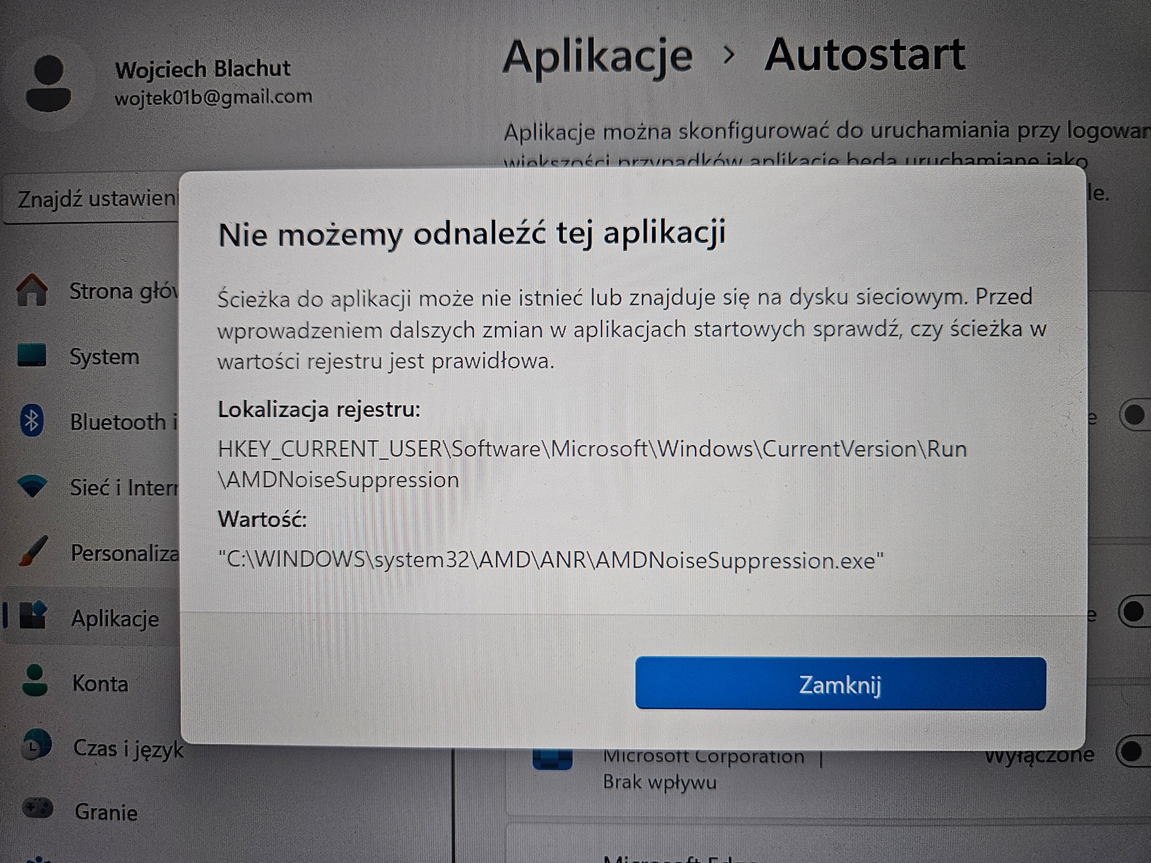 W oknie, które się pojawi, proszę przejść do HKEY_Current_User i kliknąć na tej nazwie - rozwinie się kolejny poziom Tym razem należy wyszukać Software i (znowu) kliknąć i tak aż do poziomu RUN. Tam należy wyszukać nazwę AMDNoiseSuppresion i - używając prawego klawisza myszy - wybrać z menu Usuń.