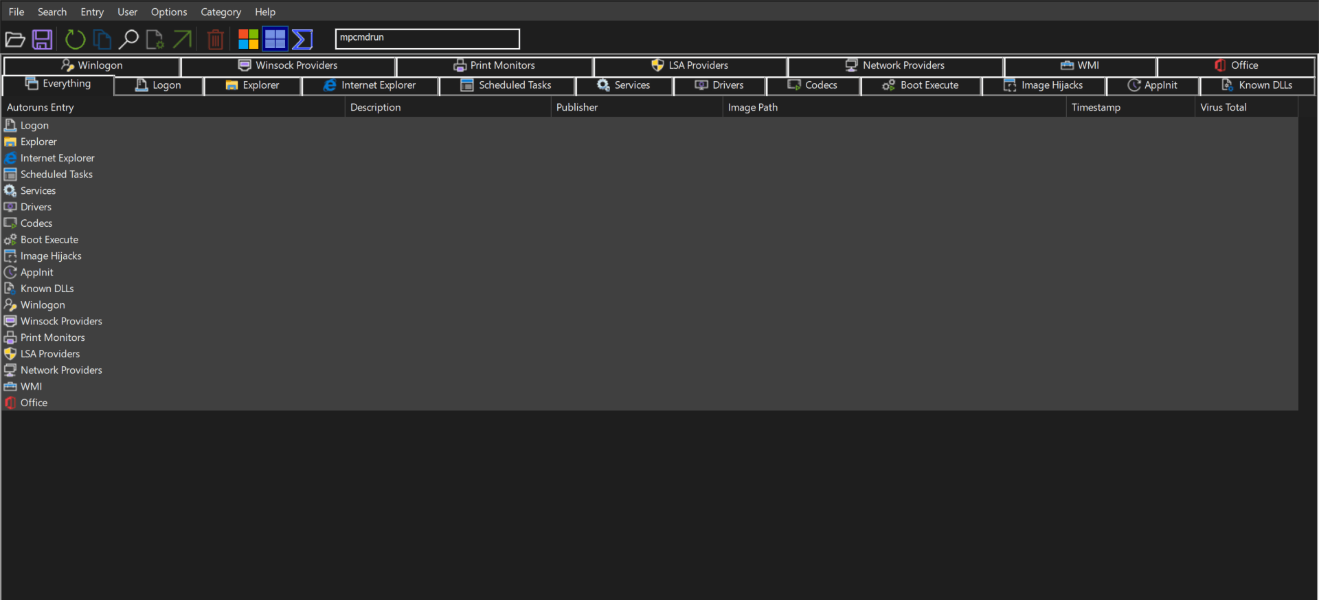 W polu filtru w Autoruns wpisz następujące polecenie: mpcmdrun