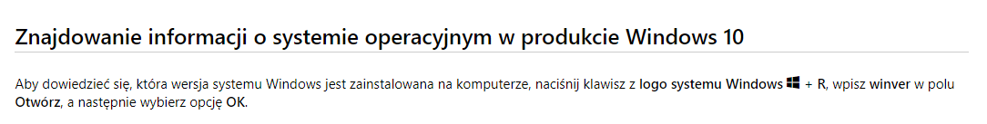 Jaka jest wersja systemu którą używasz? Aby sprawdzić zainstalowaną wersje wpisz komendę winverw pole wyszukiwania koło przycisku Start i naciśnij Enter. Wyślij proszę zrzut ekranu z tą informacją.