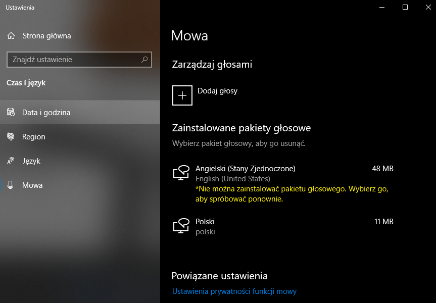 Napisz proszę również czy możesz zainstalować inne pakiety językowe czy problem dotyczy tylko tego jednego?