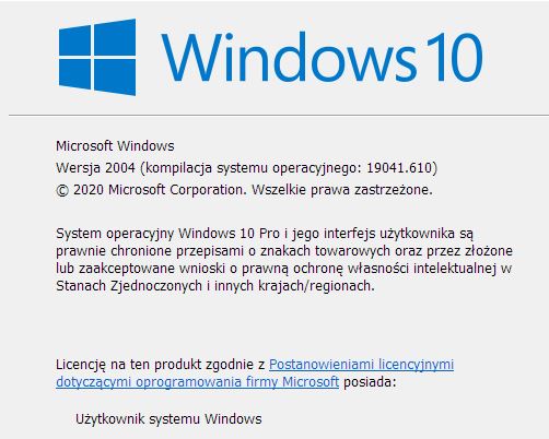 Proszę również o informacje jaka jest to wersja systemu. Aby sprawdzić zainstalowaną wersje wpisz komendę winverw pole wyszukiwania koło przycisku Start i naciśnij Enter. Wyślij proszę zrzut ekranu z tą informacją. Mam na myśli Windows 10 Home, Pro lub może inny.