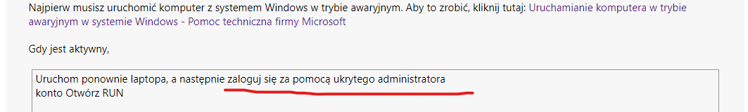 | Aby wyłączyć ukrytego administratora po naprawieniu wszystkiego: <br>Otwórz PowerShell (admin) <br> <br>Uruchom następujące polecenie: <br> <br>net user administrator /active:no |