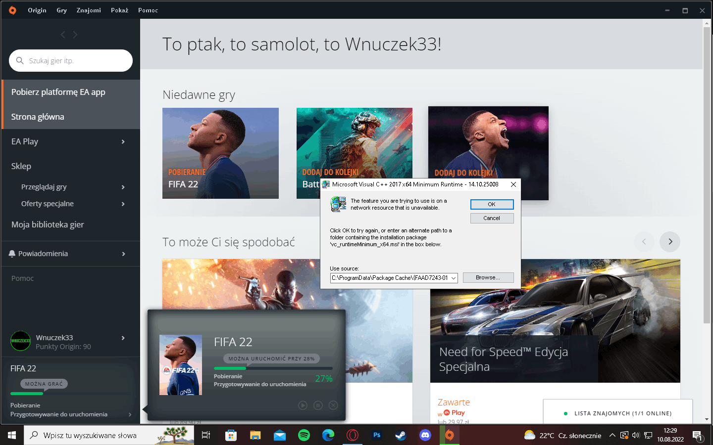 Spróbuj zainstalować pakiet redystrybucyjny Visual C++ 2017 z poniższego linku, zainstaluj wersje x86 i x64bit, a następnie uruchom ponownie, a nie zamknij) komputer.