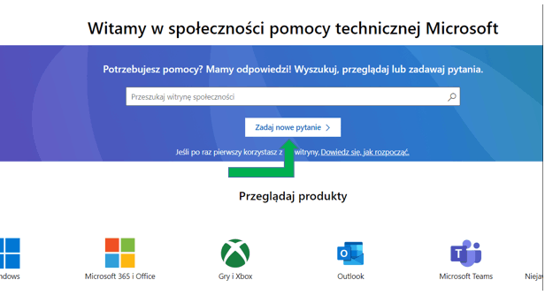 Łącze referencyjne: Kontakt — pomoc techniczna firmy Microsoft ( Podany link jest w wersji angielskiej).
