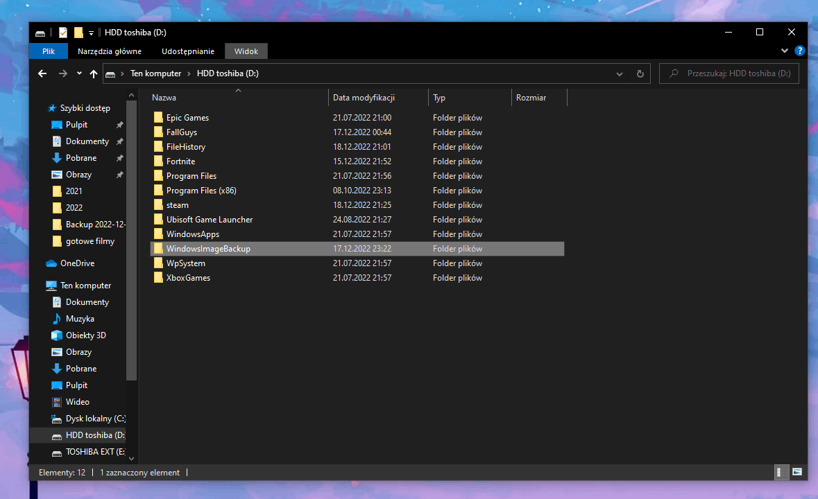 Dysk D nie jest kolejną partycją tego samego dysku. Mam w komputerze dwa dyski SSD M.2 i HDD i kopia jest na HDD i dlatego nie wiem co robić