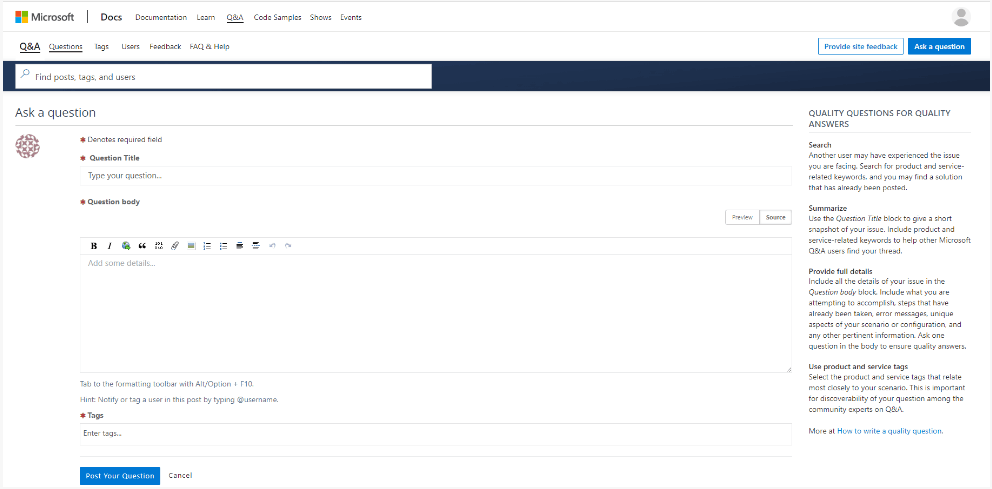 Kliknij to łącze Zadaj pytanie i zaloguj się przy użyciu swojego konta Microsoft. Kliknij Zadaj pytanie i upewnij się, że wypełniłeś wszystkie wymagane pola.