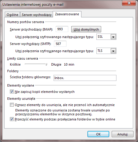Podczas połączenia kont onlinowych nie należy zmieniać ustawień konta, a te stworzyć od razu prawidłowo zgodnie z przekazanymi parametrami usługodawcy, ponieważ tworzy to błędy w komunikacji z serwerem.