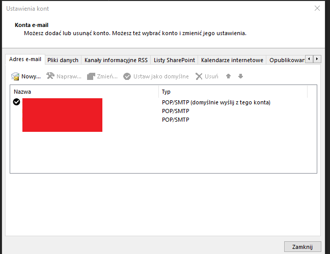 Wszystkie skrzynki w outlook'u są podpietę na pop3.