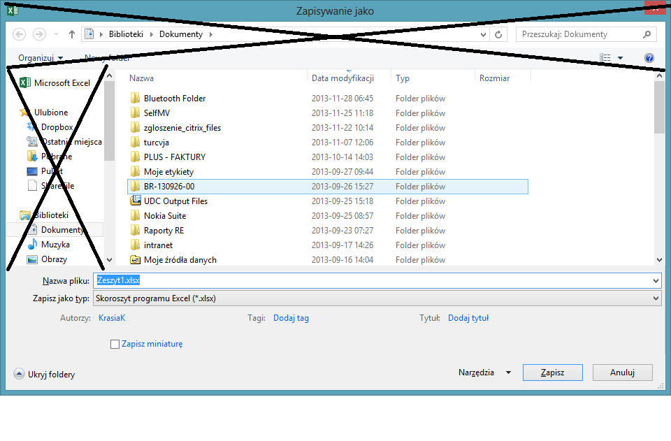 Po kliknieciu zapisz jako: okno dialogowa jest okrojone (nie pokazuje folderów),: