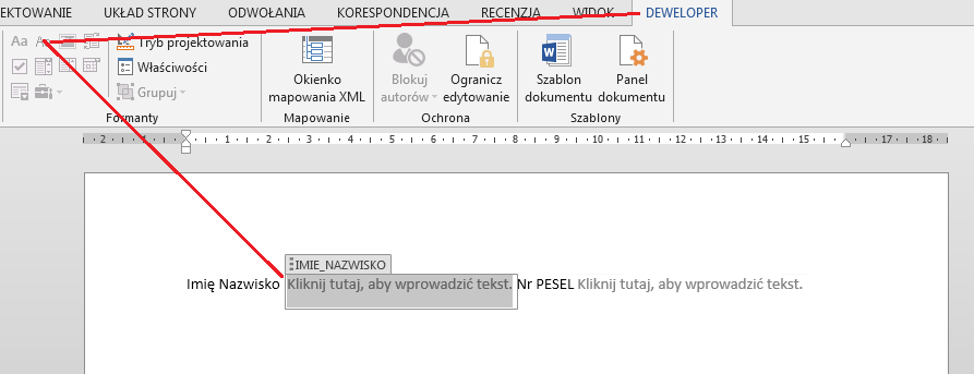 Aby działać w pow. sposób należy cały formularz przepisać/przerysować. Taki dokument można zapisać jako szablon i po jego uruchomieniu katalogować wypełnione dokumenty (dla odtworzenia wydruku lub archiwizacji).