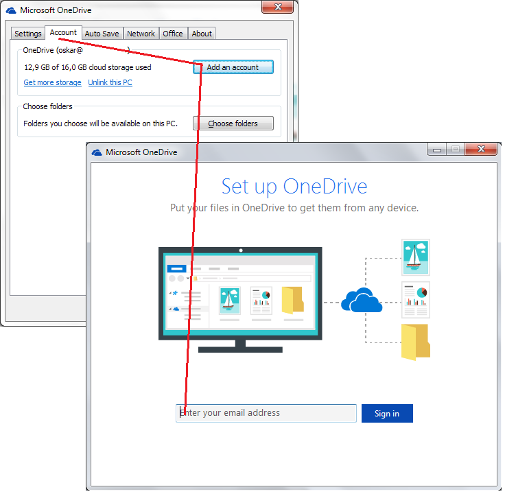 We właściwościach z pod prawego klawisza masz zakładkę konto i tam powinno byc po emailu to samo konto co w Office.