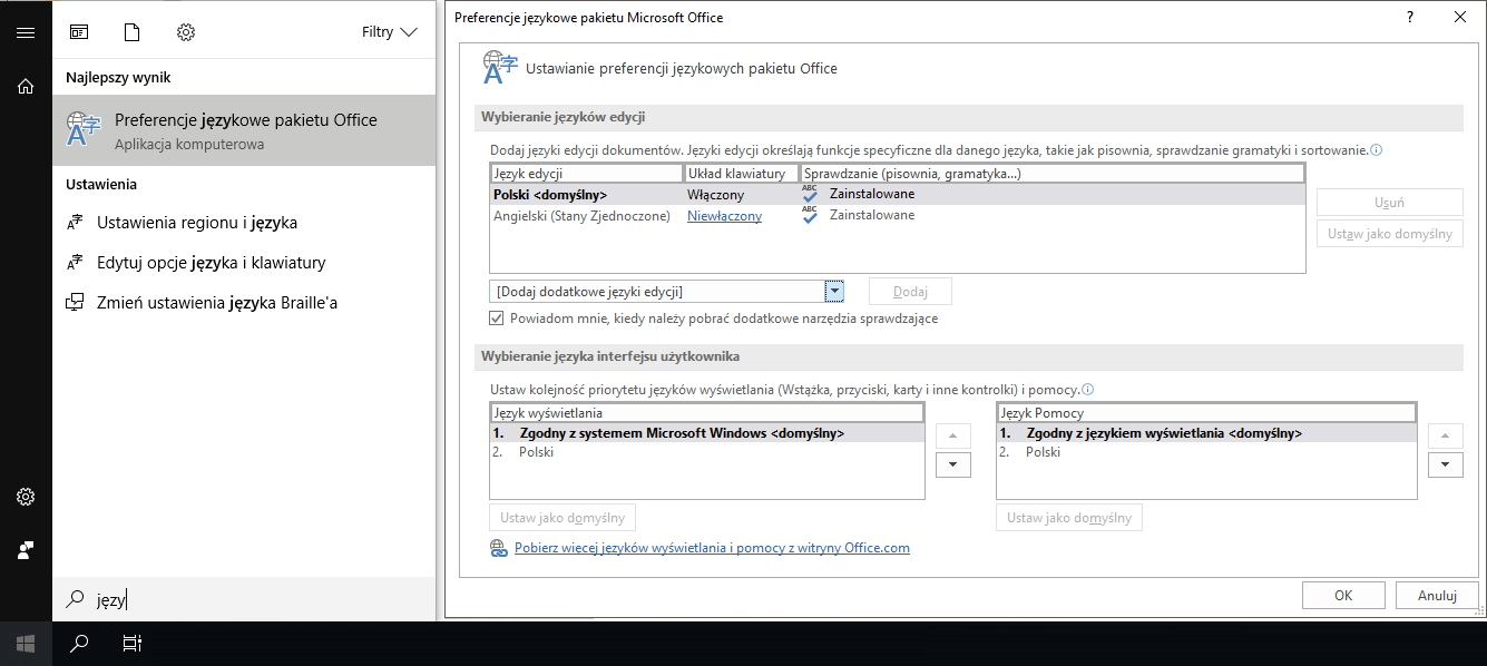 Generalnie są 2 ustawienia w Office odpowiadający regionizacji: