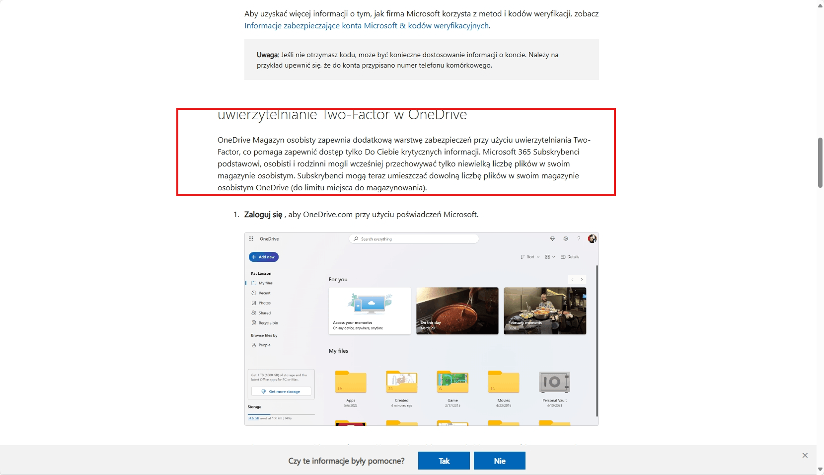 Ochrona plików usługi OneDrive w magazynie osobistym - Pomoc techniczna firmy Microsoft